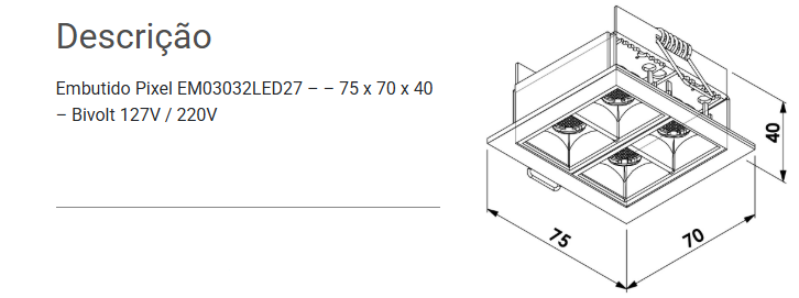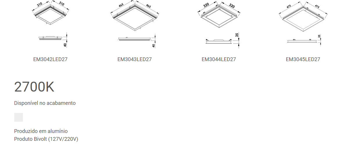 PlafonsEmbutido LED Pixel Leia mais PlafonsPlafon LED Quadrado ILUME Leia mais PlafonsPLAFON LUNARE Leia mais PlafonsPlafons de embutir quadrados Piazza Leia mais PlafonsPlafon de embutir quadrado Leia mais 5/5